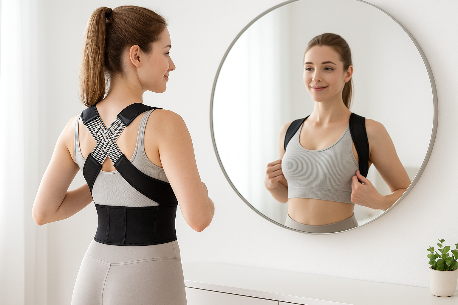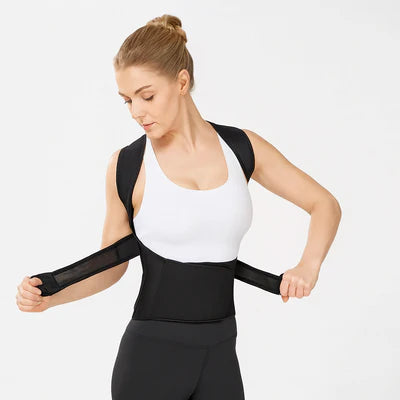 Put on your Corecare posture corrector like a vest — its adjustable straps ensure a secure and comfortable fit for all body types.